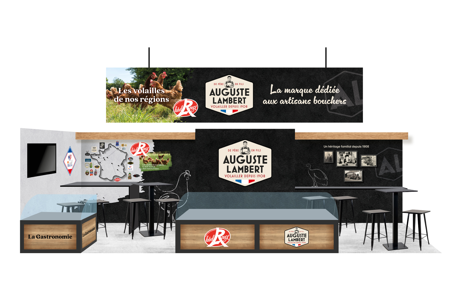 Pour le SIRHA, la création du stand de commerce traditionnel dédié au lancement de la nouvelle marque Auguste Lambert incarne une ambiance premium, où chaque détail célèbre le savoir-faire artisanal et l’excellence gastronomique. Conçu comme un écrin raffiné, ce stand met en lumière l’héritage et la passion des artisans bouchers, offrant une immersion authentique dans un univers où tradition et innovation se rencontrent. Matériaux nobles, finitions soignées et mise en scène élégante reflètent l’engagement de la marque à sublimer les métiers de la boucherie, affirmant ainsi son ambition d’accompagner et d’inspirer les artisans d’aujourd’hui et de demain.