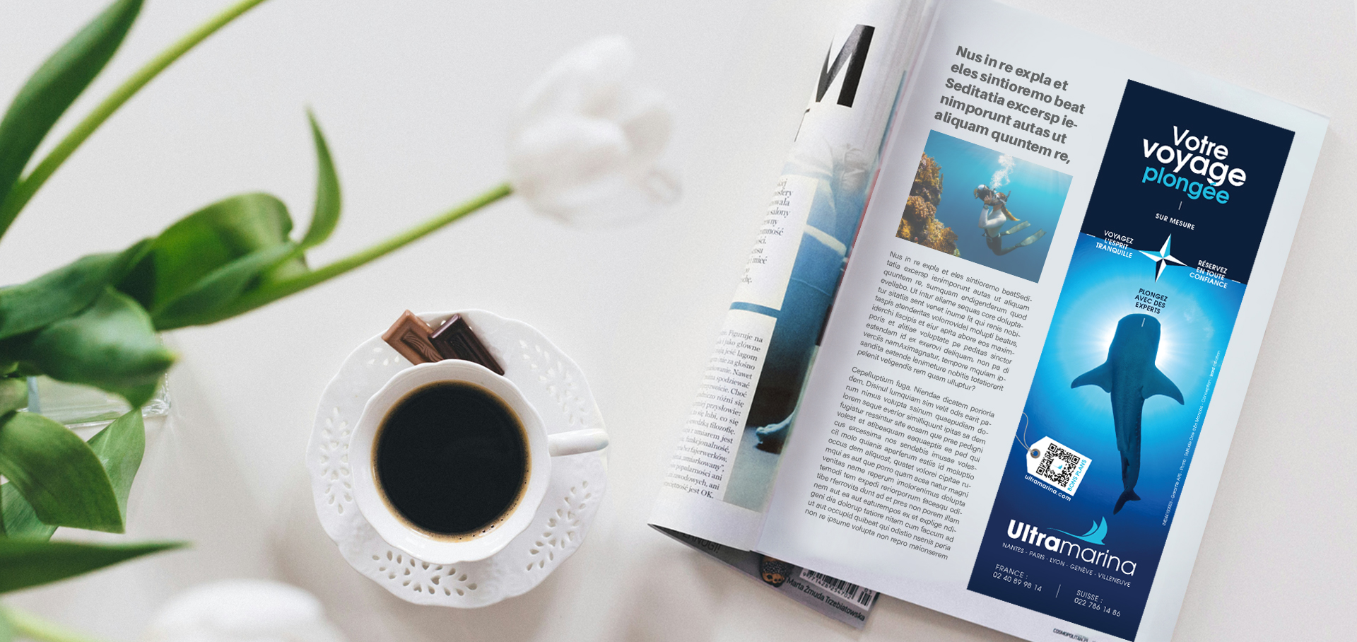 Ultramarina, acteur majeur dans l’organisation de voyages de plongée sur mesure, nous a confié la création d’insertions presse destinées à promouvoir leurs destinations exceptionnelles. En tant qu’experts dans l’élaboration de séjours personnalisés, Ultramarina souhaitait des visuels qui captent immédiatement l’attention et inspirent les voyageurs à découvrir des lieux de rêve. Nous avons également adapté ces visuels pour les supports numériques, garantissant une cohérence entre les formats imprimés et web. Une autre campagne a été réalisé pour leur marque Pacifique à la carte.
